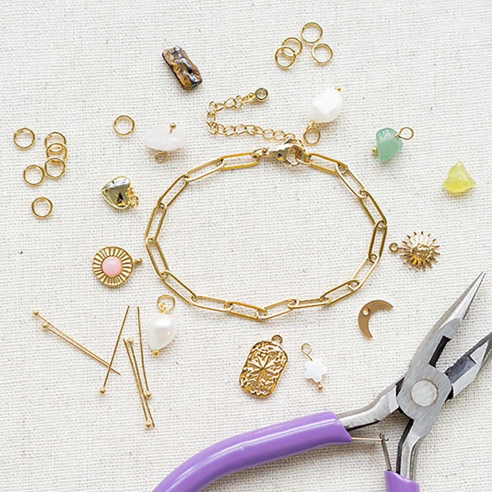 - Plusieurs breloques en acier inoxydable, perles d'eau douce, pierre semies- précieuses