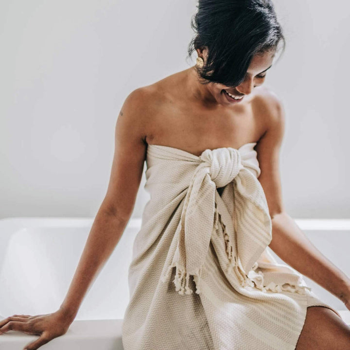 Cette serviette à franges est tissée à la main dans un coton pur. Son design classique peut aussi bien s’accorder avec votre cuisine ou votre salle de bain, elle rehaussera votre espace et votre quotidien. Ce tissage est durable et fait pour durer.