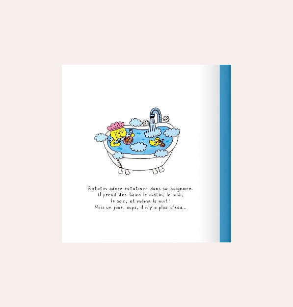 Ratatin adore ratatiner dans sa baignoire. Il prend des bains le matin, le midi, le soir et même la nuit! Mais un jour, oups, il n'y a plus d'eau...