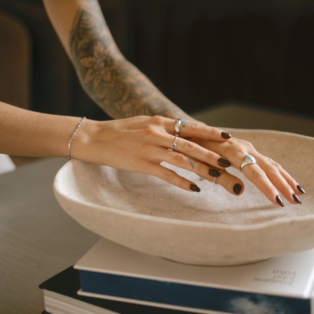 La bague Moss Agate est autant élégante seule qu'agencée avec vos autres bagues. Fabriquée en argent 925 recouvert de rhodium, elle conserve son éclat sans ternir et peut même être portée sous l'eau!