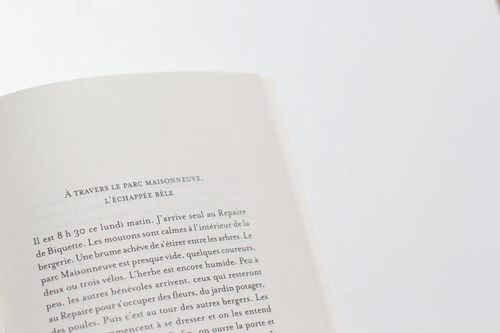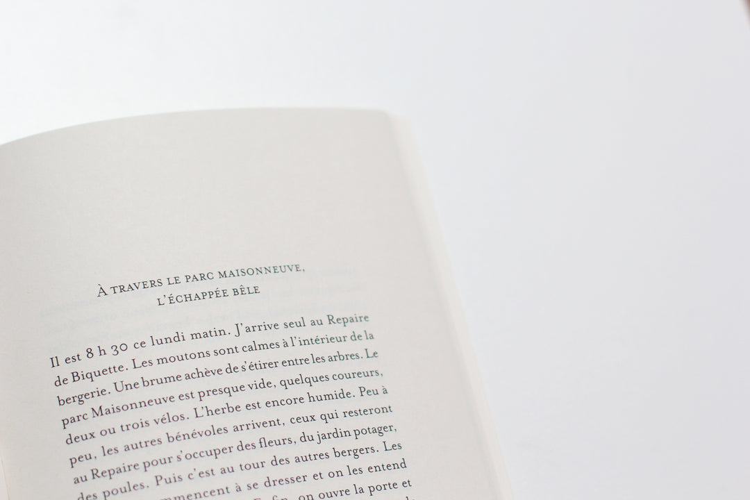 Le mouton habite nos fables, il endosse le rôle du doux, du gentil, mais aussi du grégaire, un peu naïf, toujours inoffensif. Pendant trois étés, Thierry Pardo a participé en tant que berger à une expérience d’écopâturage urbain dans un parc de Montréal. Projet agropastoral à vocation écologique, sociale et humaniste, la présence des moutons en ville intrigue le visiteur, émeut l’aîné, émerveille l’enfant.