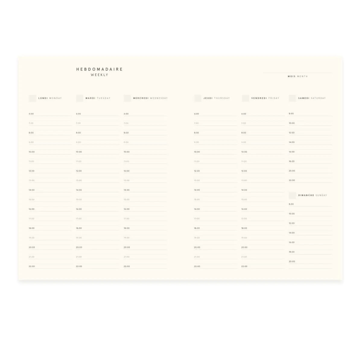 Organisez votre vie avec l'agenda non-daté de Baltic Club ! Chaque semaine est disposée sur une double page avec une organisation horaire et beaucoup d'espace pour écrire vos événements ou vos tâches. L'agenda commence en janvier 2026 et termine en décembre 2026.