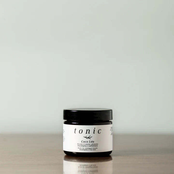 - Ingrédients: Huile d'olive biologique, huile de coco biologique, cire de candelilla, cire de carnauba biologique, cayenne, calendule biologique, camomille biologique, vitamine E, huile essentielle de mélaleuca biologique (tea tree), huile essentielle d'eucalyptus globulus biologique, huile essentielle de menthe poivrée biologique.