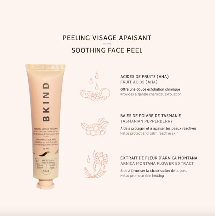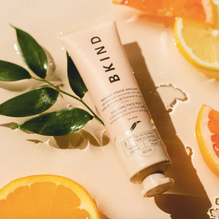 BKIND est une marque montréalaise qui a pour mission de créer des produits de beauté et de soins de la peau. Leur gamme complète est composée d'ingrédients entièrement naturels, à base de plantes, véganes, écologiques et fabriqués au Québec. L'entreprise est certifiée sans cruauté animale par Leaping Bunny et utilise actuellement un plastique à 50% recyclé et certifié OceanBound, c'est-à-dire du plastique collecté sur les rives des océans.