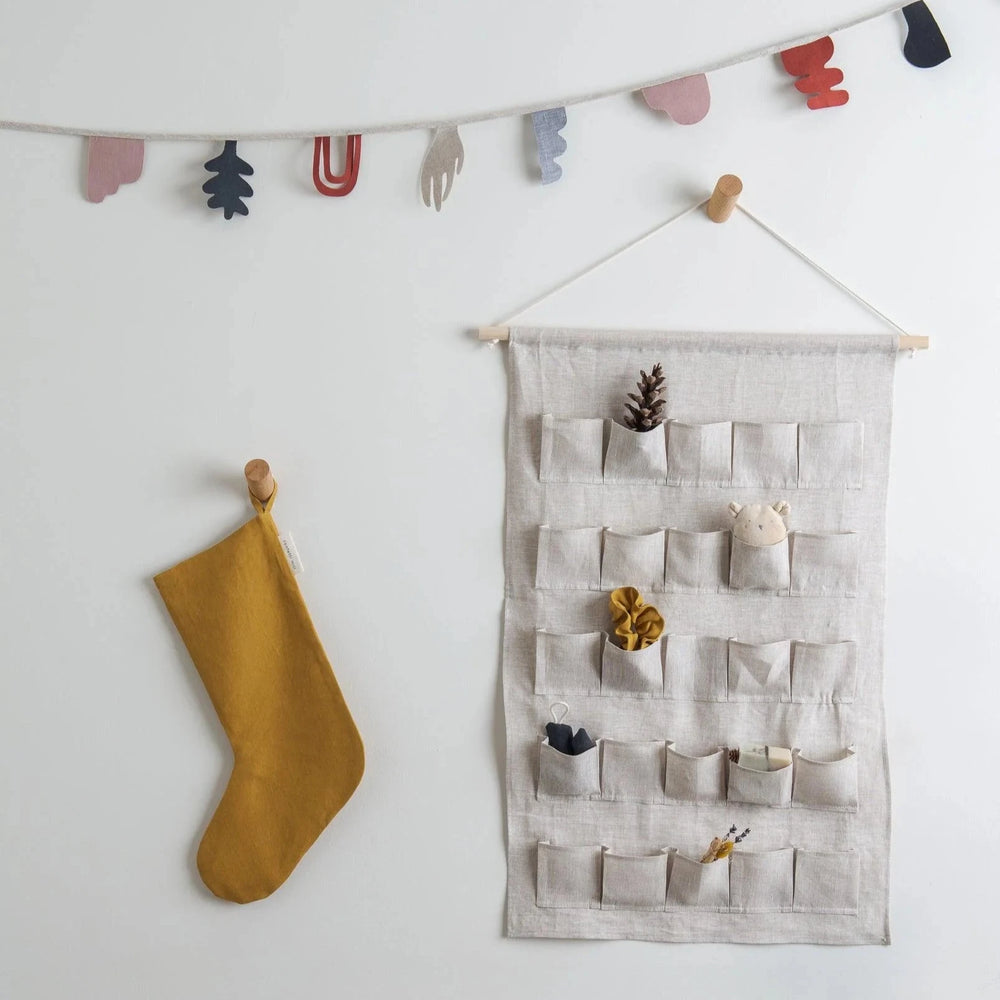 Each pocket measures 2.5cm deep on each side, providing plenty of space for your big ideas! You can fill them with little notes, gifts or treats for the kids. Its minimalist and elegant design makes it versatile, ideal for various storage purposes. Hang it behind a door, whether in the bathroom or in the little ones' bedroom.