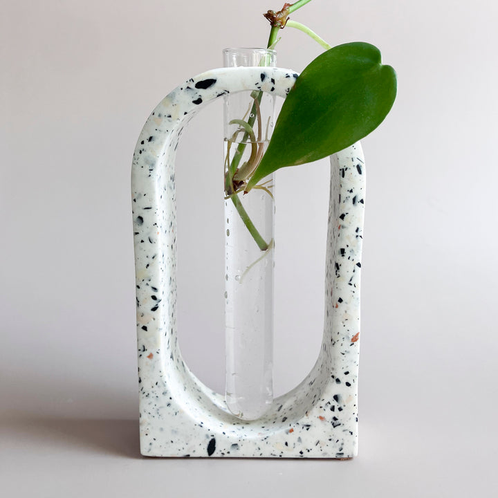 This pretty jesmonite and rope hanging planter will add charm to every room where it is installed. Jesmonite is a versatile and durable material that offers great design flexibility while being environmentally friendly.