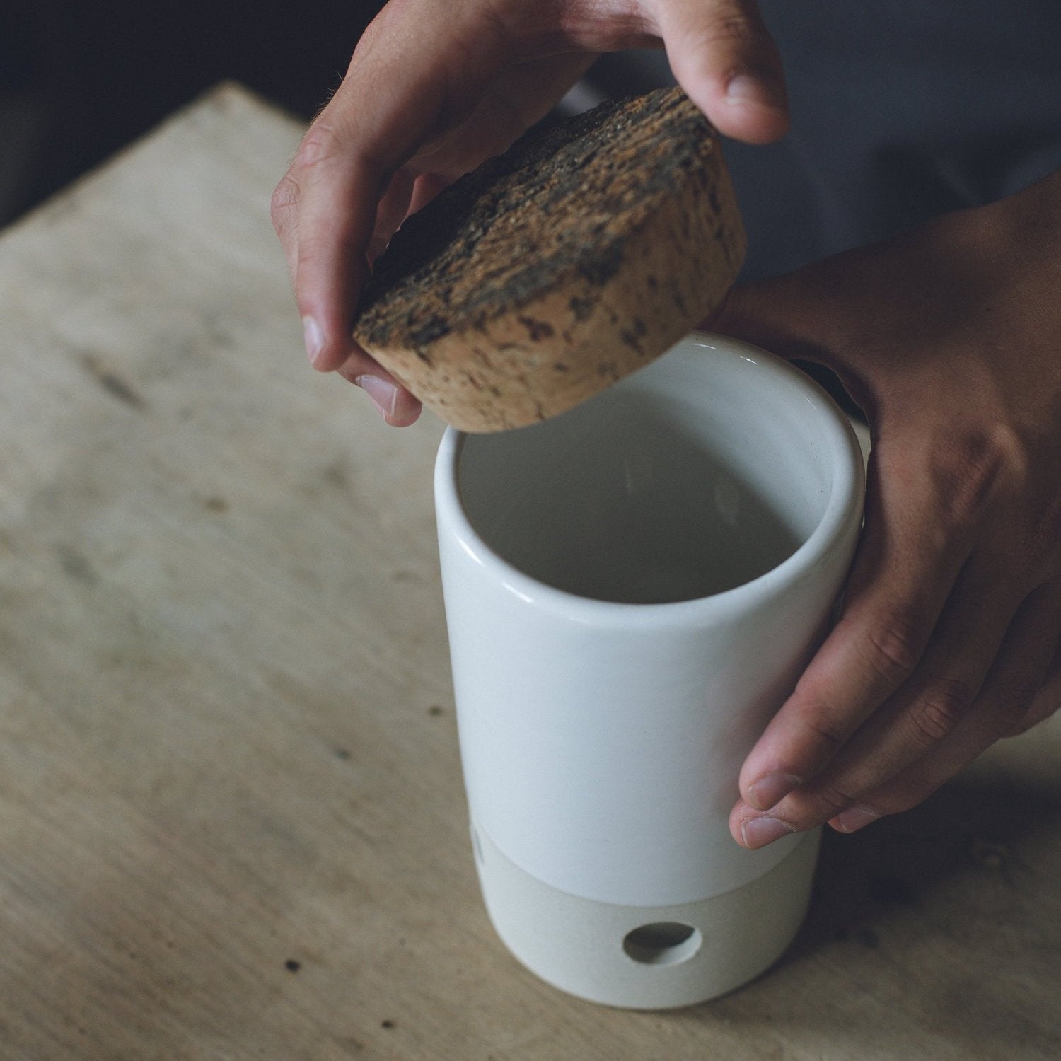Marie-Joël Turgeon fonde Atelier Tréma en 2004 après des études en arts visuels et médiatiques à l’UQAM. D’abord consacrée à la céramique picturale, elle oriente ensuite son travail vers la création de vaisselle utilitaire en collaboration avec son mari, Jordan Lentink. Inspirée par les paysages marins des Maritimes et de la côte Est américaine, leur collection évoque l’horizon et les textures d’objets patinés par la mer.