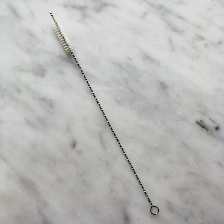 Straw brush for cleaning reusable straws. Fits straws with a diameter of 0.25 inch (6 mm) or 0.3 inch (9 mm).