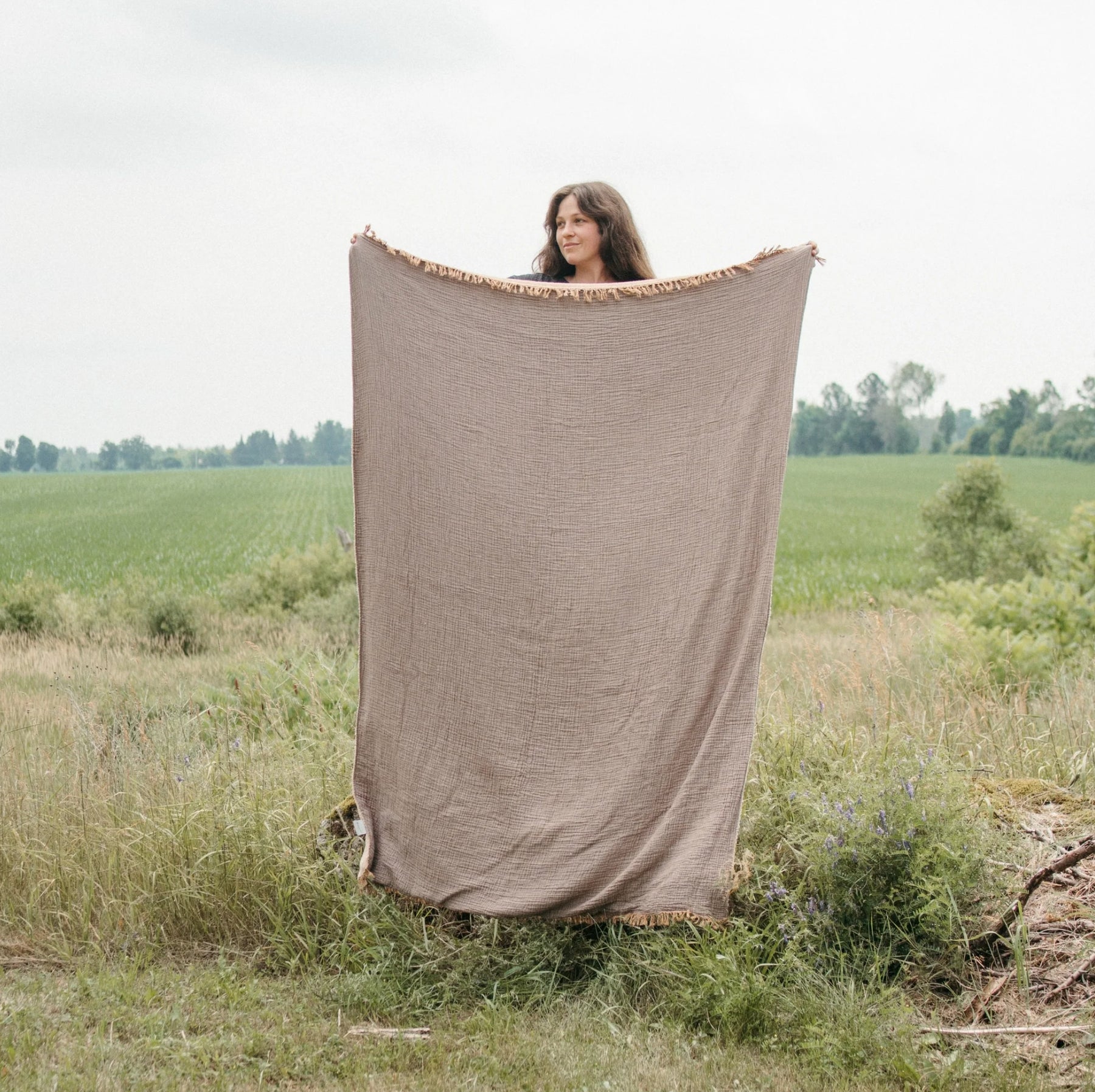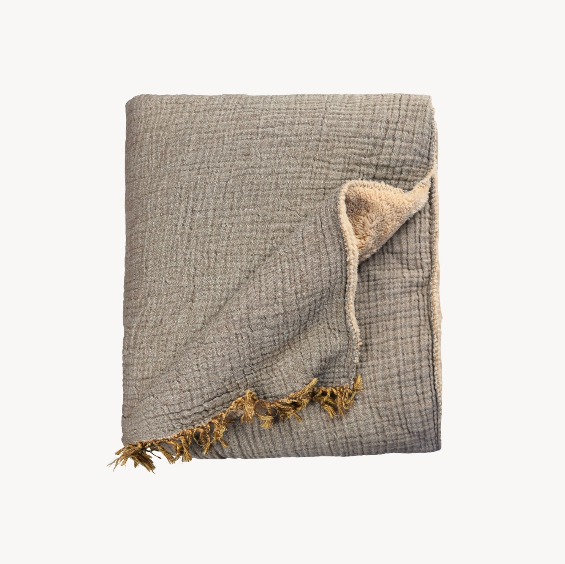 Jeté polaire doublé en coton froissé - Bison - Crinkle